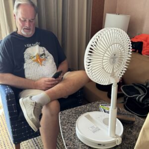 Cruise cabins can sometimes feel a little warm, and my husband sleeps much better with a fan. A small rechargeable fan is perfect because it doesn’t need to stay plugged in and folds neatly into a small travel bag.
